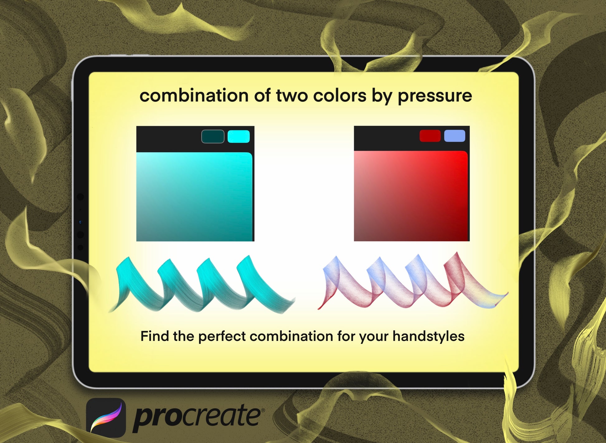In addition, these brushes feature dynamic dual-color behavior, where the color shifts from one tone to another depending on the pressure applied with the Apple Pencil, adding depth, contrast, and a distinctive visual finish to every letter.