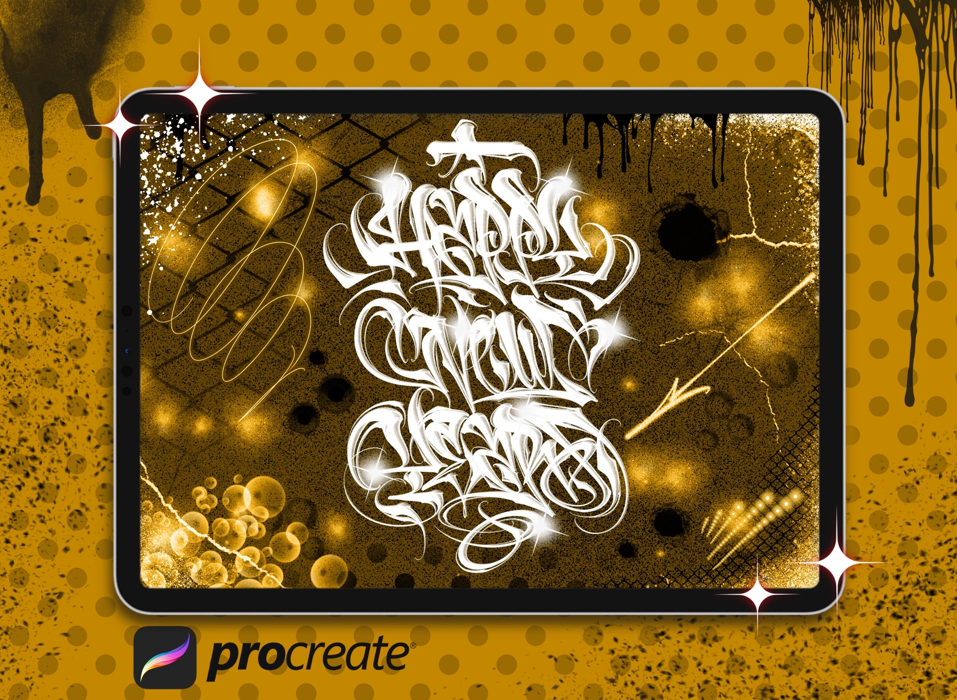 Take your lettering, graffiti, calligraphy, and illustration designs to the next level with this 40-brush detail pack. Each brush is designed to help you experiment, practice, and refine your style, adding effects and finishing touches that make your pieces look polished and unique.